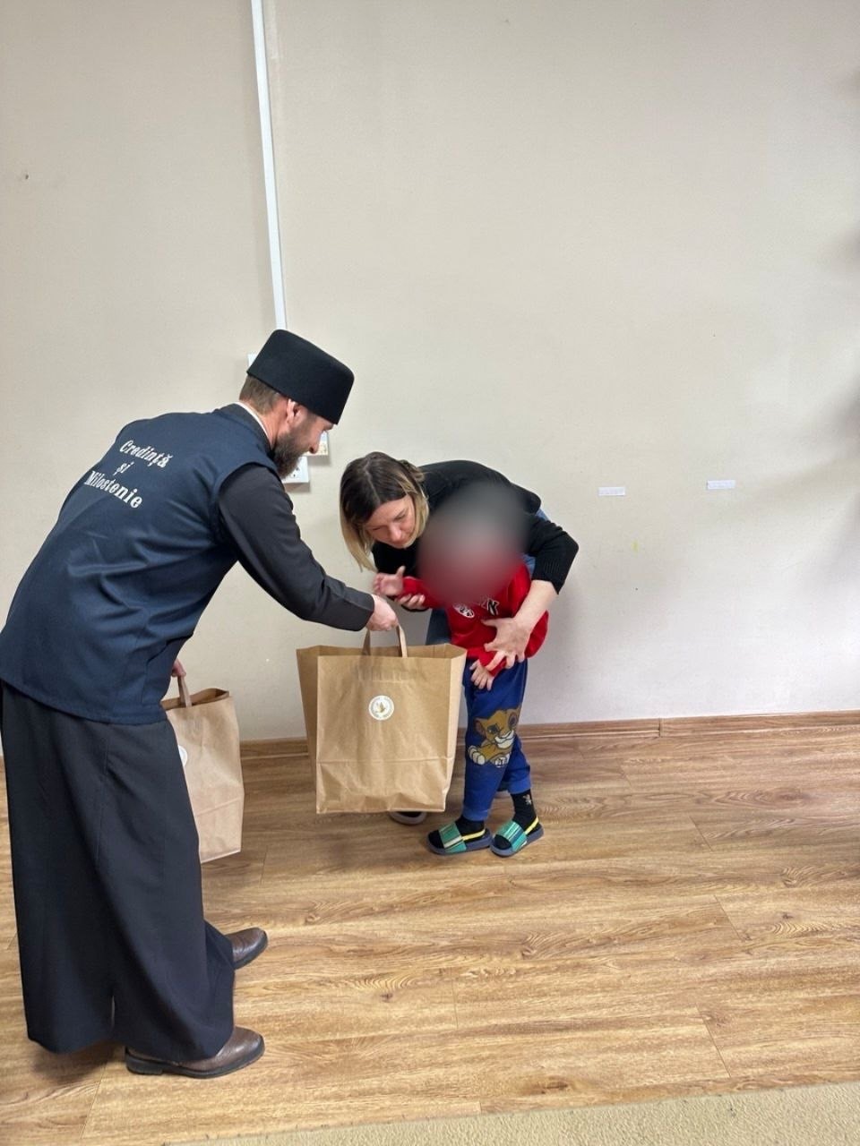 Darurile au fost oferite de către părintele ieromonah Macarie Crudu, președintele Sectorului Sinodal Activitate Socială și Caritate și al A. O. „Credință și Milostenie”, împreună cu tinerii voluntari.
