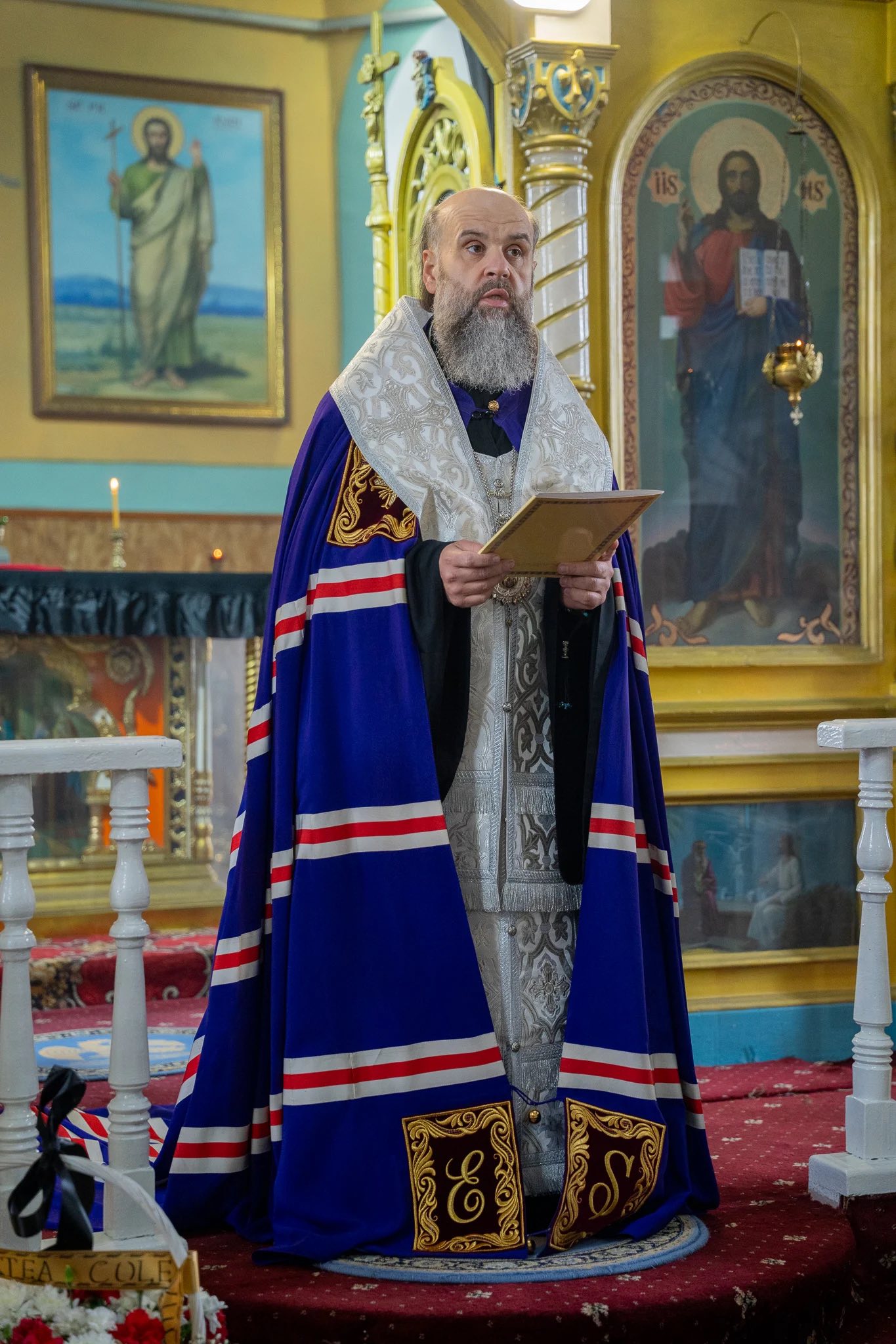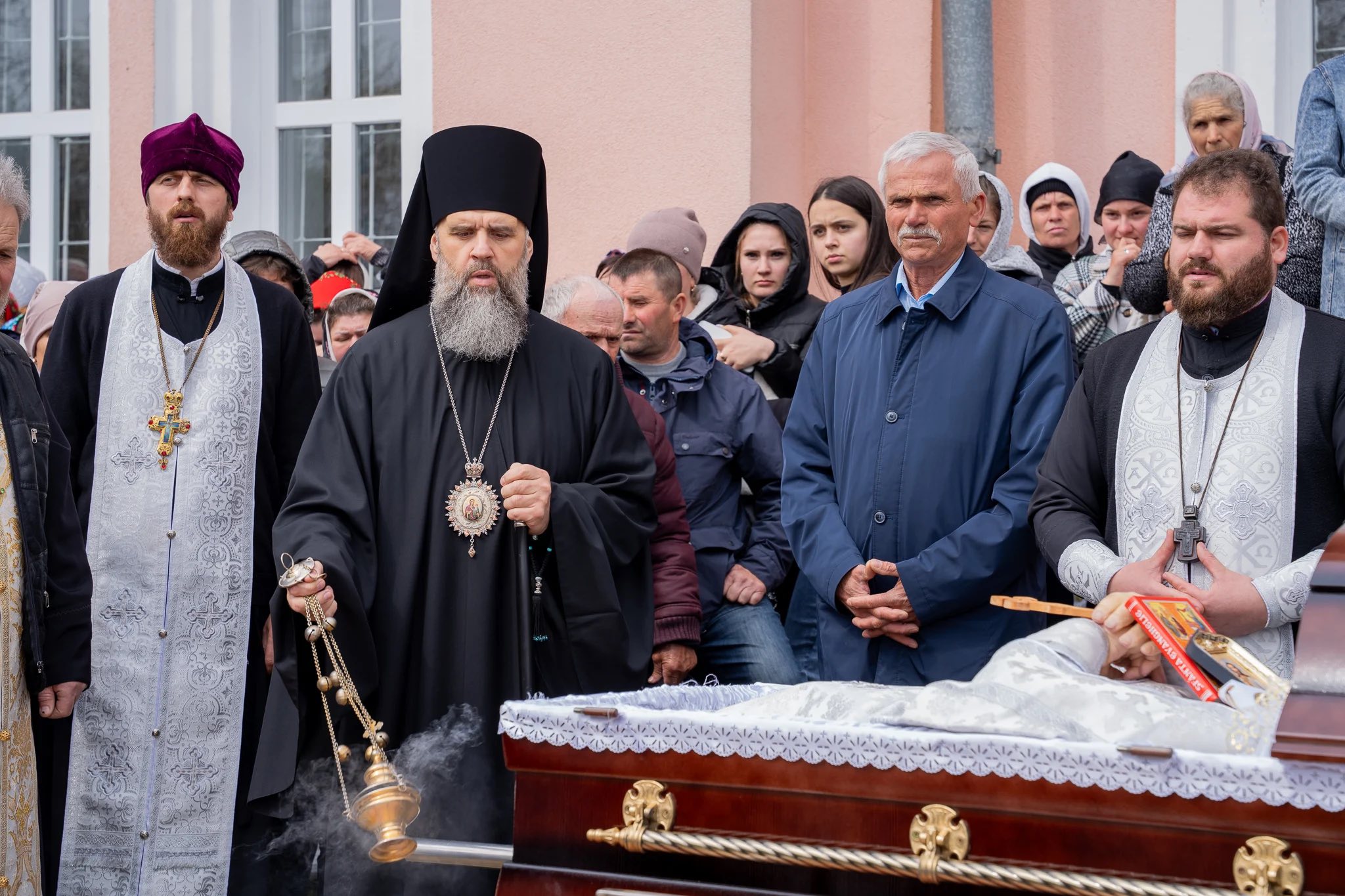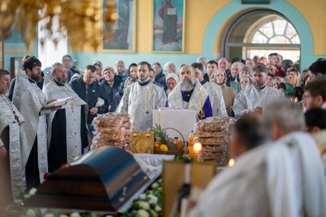 The funeral service was officiated, with the blessing of His Eminence Metropolitan Vladimir, by the Vicar of the Metropolis, His Grace Siluan, Bishop of Orhei.