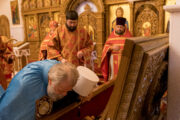 În dimineața zilei, Întâistătătorul Bisericii Ortodoxe din Moldova, Înaltpreasfințitul Mitropolit Vladimir, a fost întâmpinat de Preacuvioasa Egumenă Epistemia (Goncearenco), de un sobor de arhierei și preoți, precum și de mulțimea credincioșilor veniți să participe la Sărbătoare.