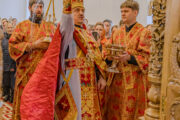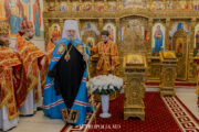 Sfânta Liturghie arhierească a fost săvârșită în Biserica istorică cu hramul „Sfântul Mare Mucenic Gheorghe”. Înaltpreasfinției Sale i-au coliturghisit Înaltpreasfințitul Ioan, Arhiepiscop de Soroca și Drochia, Preasfințitul Siluan, Episcop de Orhei, vicar mitropolitan, prot. mitr. Vadim Cheibaș, secretar mitropolitan, împreună cu un sobor de preoţi și diaconi.