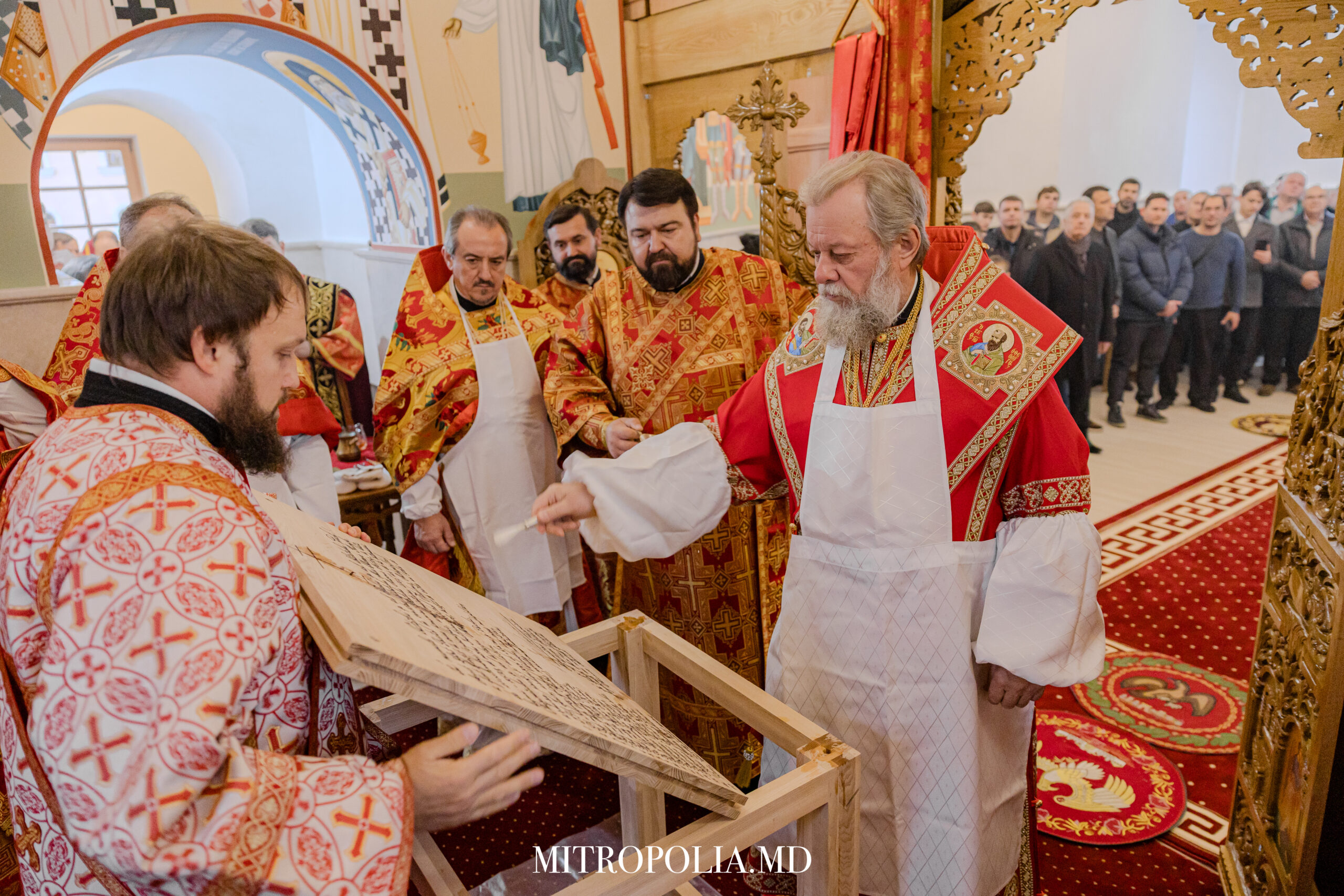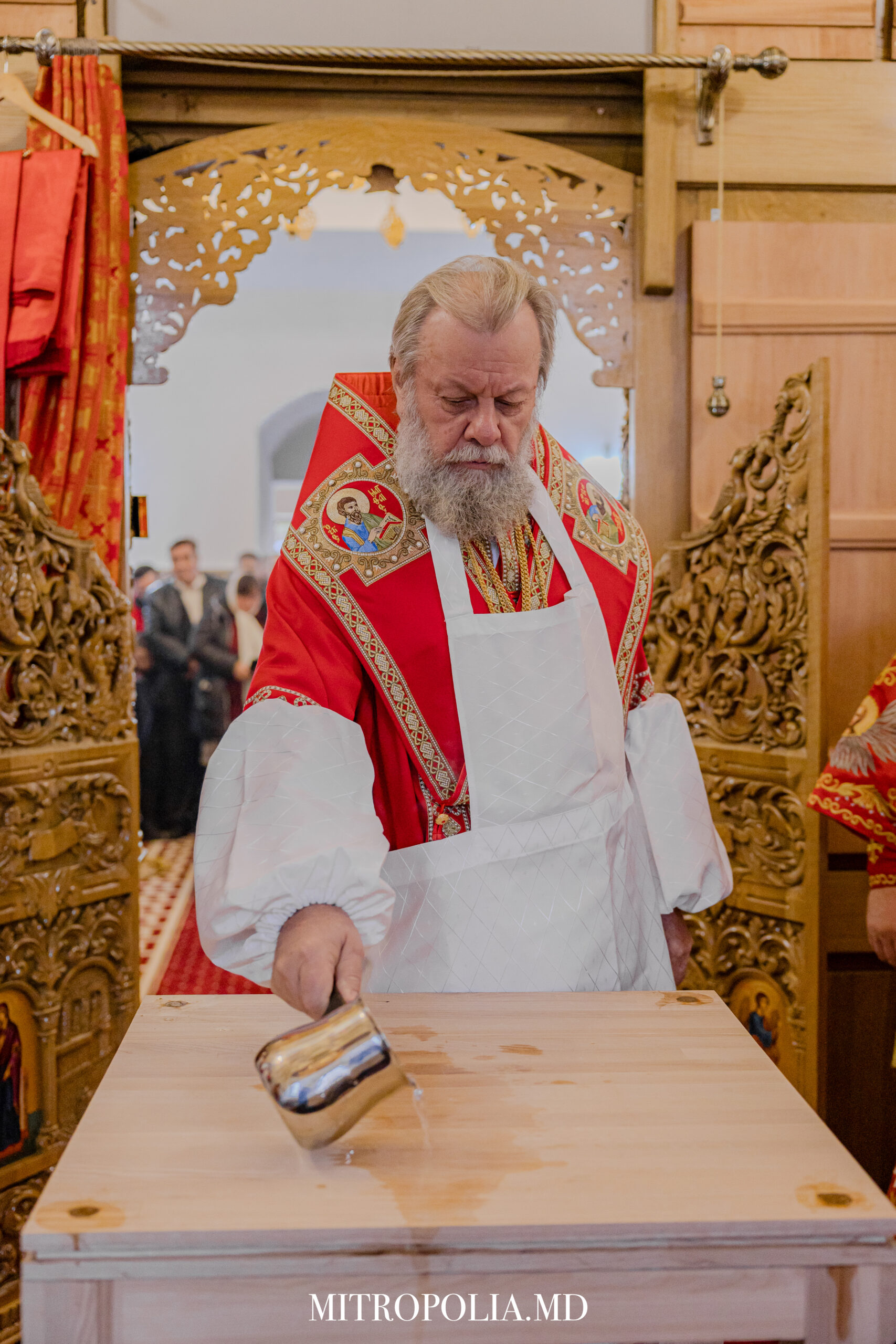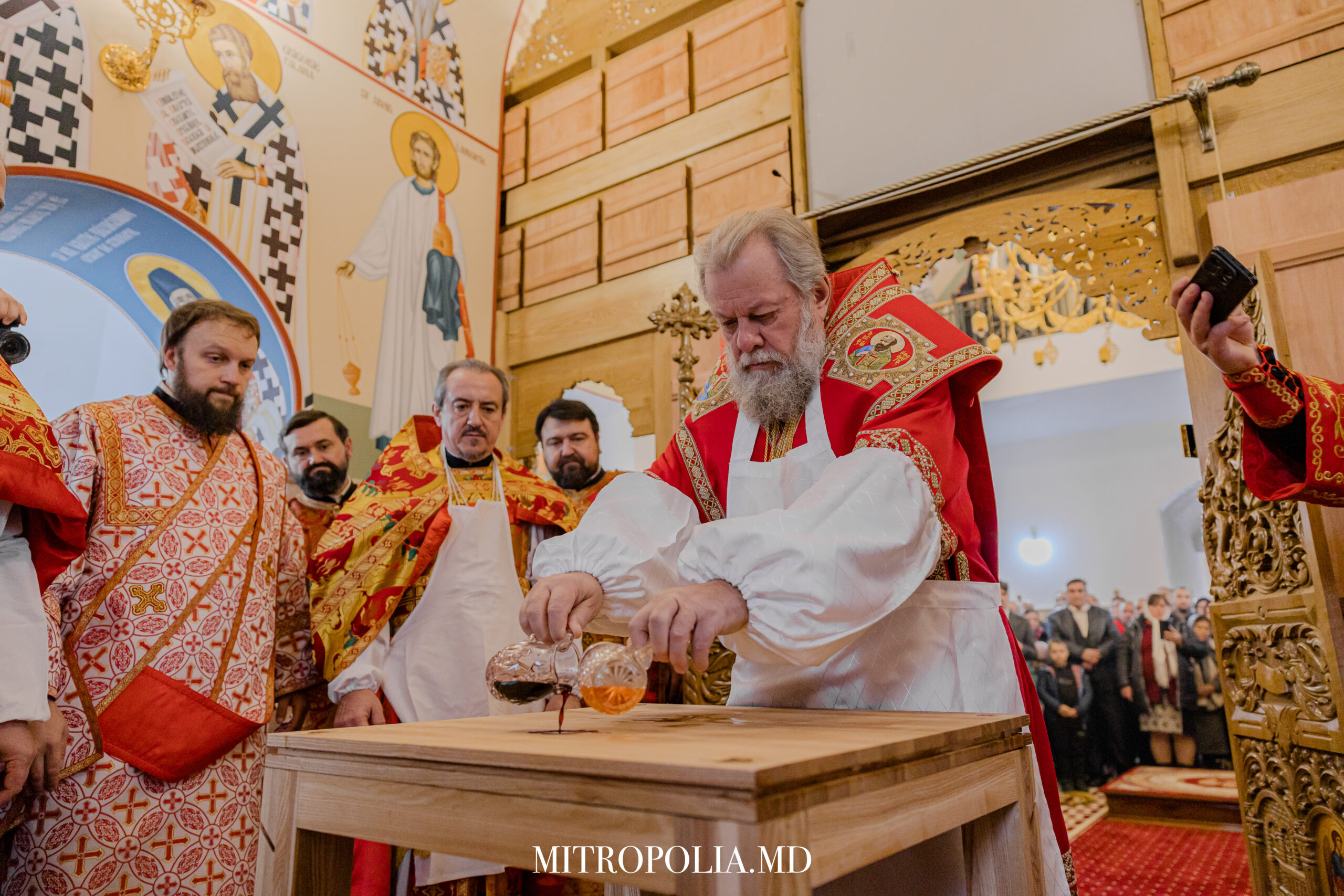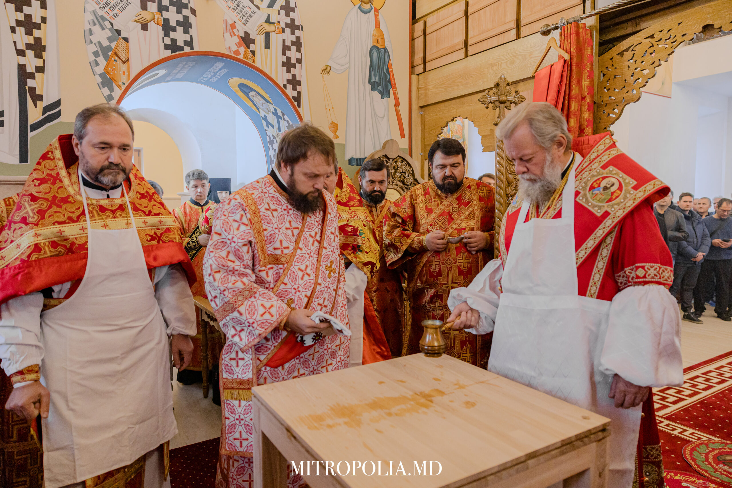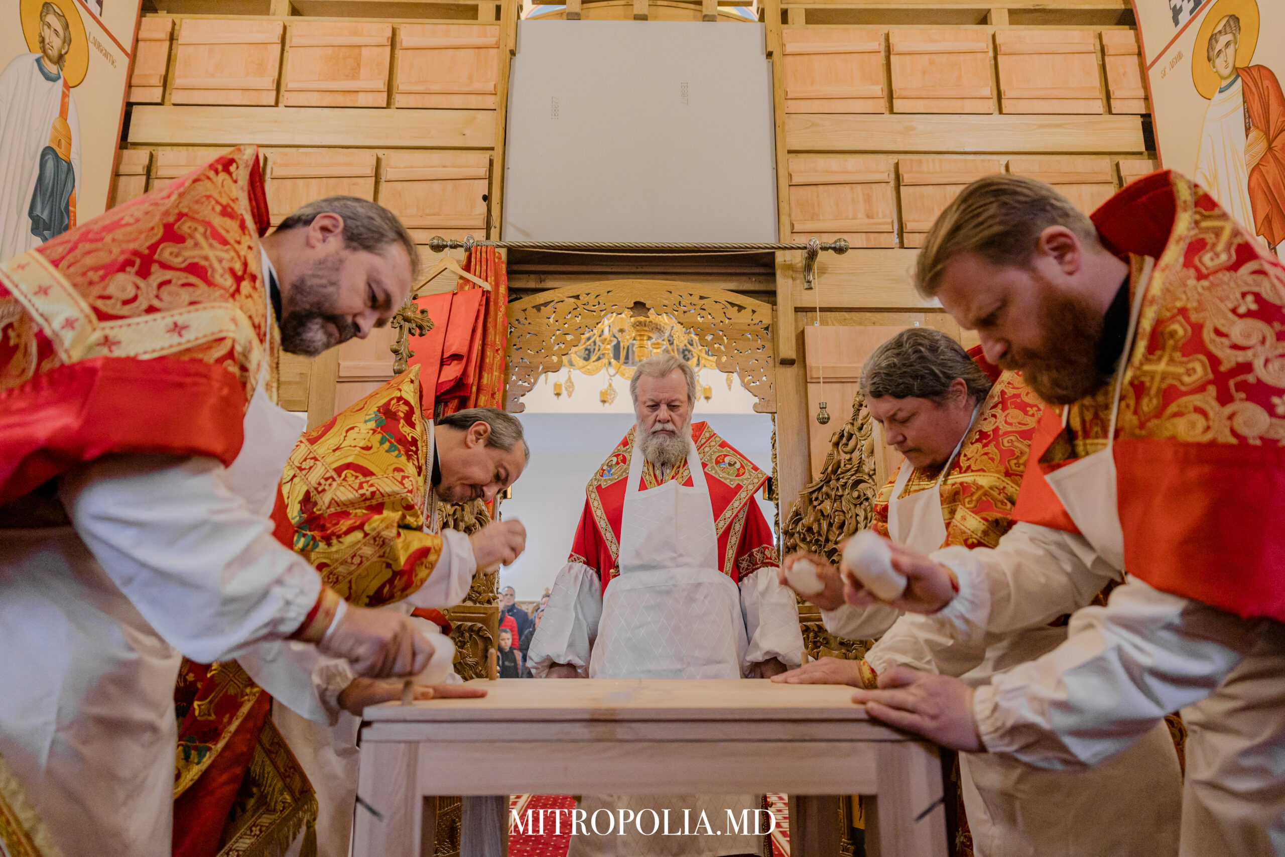 Serviciul Divin a început cu rânduiala de sfințire a Sfintei Mese. Sfânta Masă este cel mai sfânt loc din altar. Pe ea sunt săvârșite Sfintele Taine; aici se actualizează iconomia mântuitoare a lui Hristos, se împlinește jertfa Mântuitorului, iar pâinea și vinul sunt prefăcute de Duhul Sfânt în Trupul și Sângele Domnului.