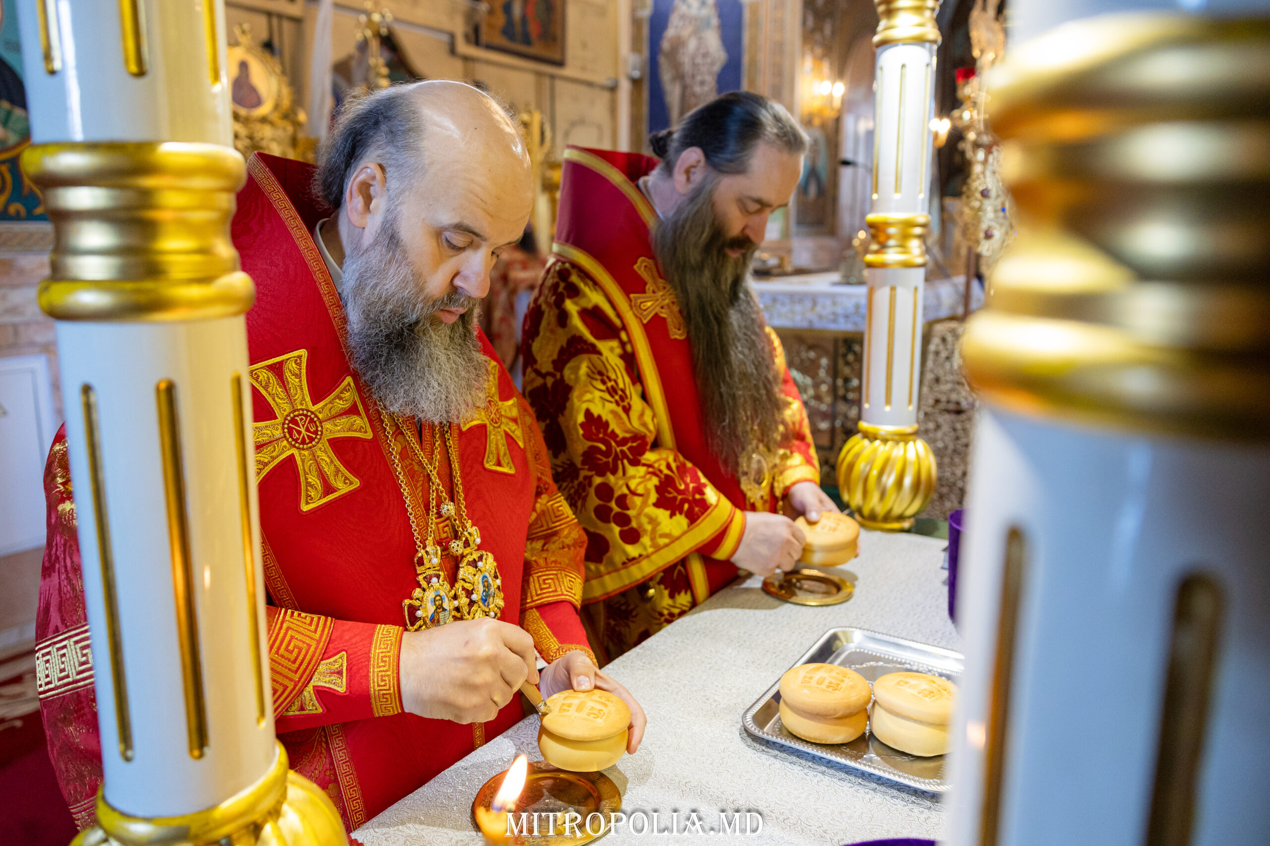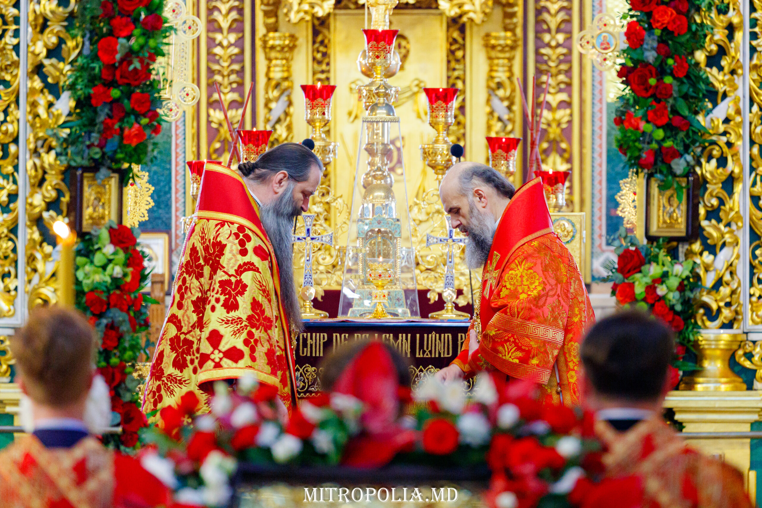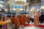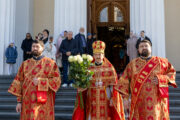 Его Высокопреосвященству сослужили: Преосвященные викарные епископы Орхейский Силуан и Кэприянский Филарет, митрофорный протоиерей Вадим Кейбаш, секретарь Молдавской митрополии, соборное духовенство.