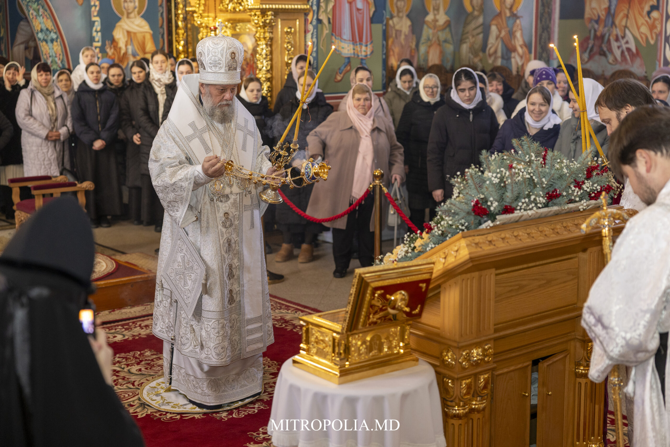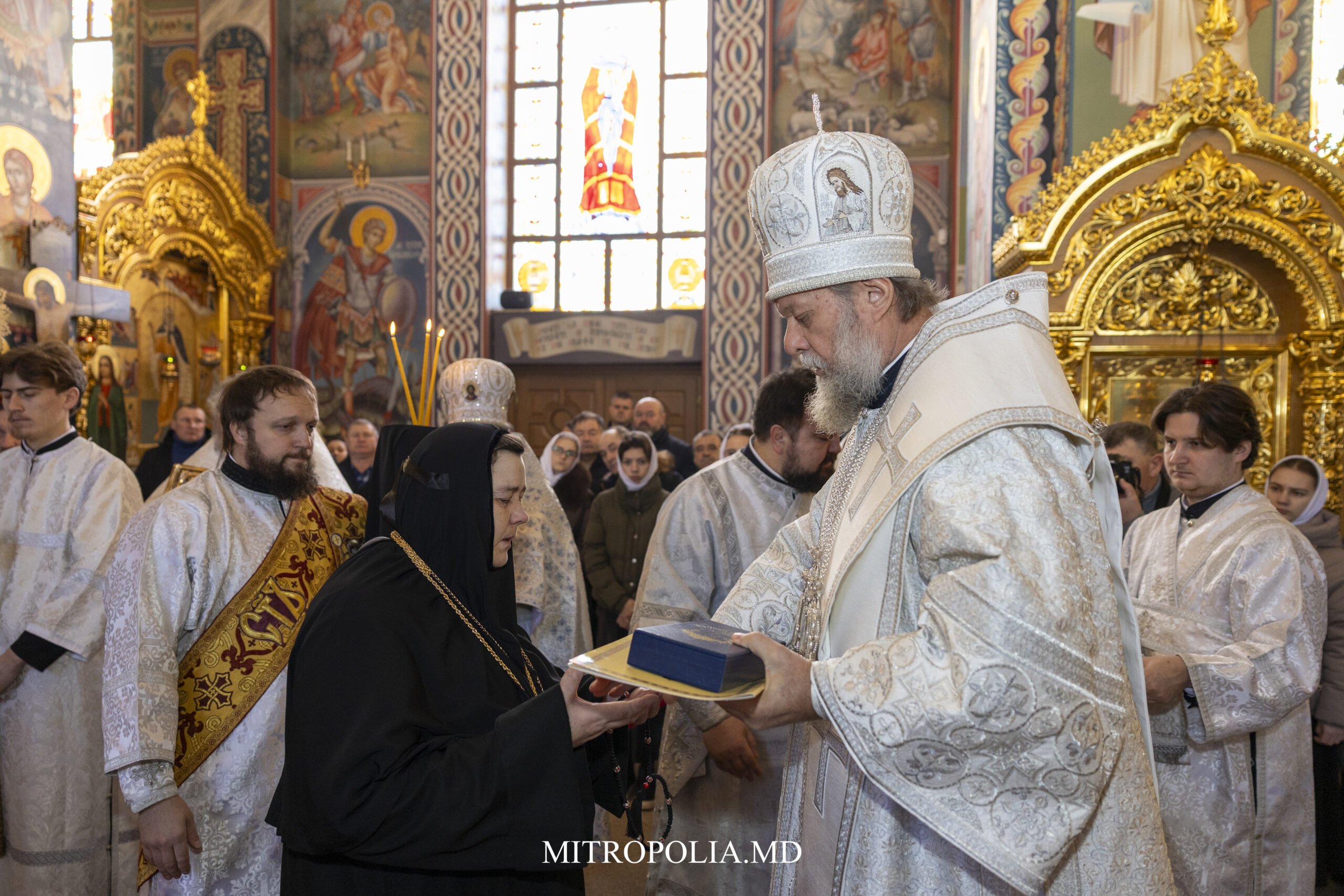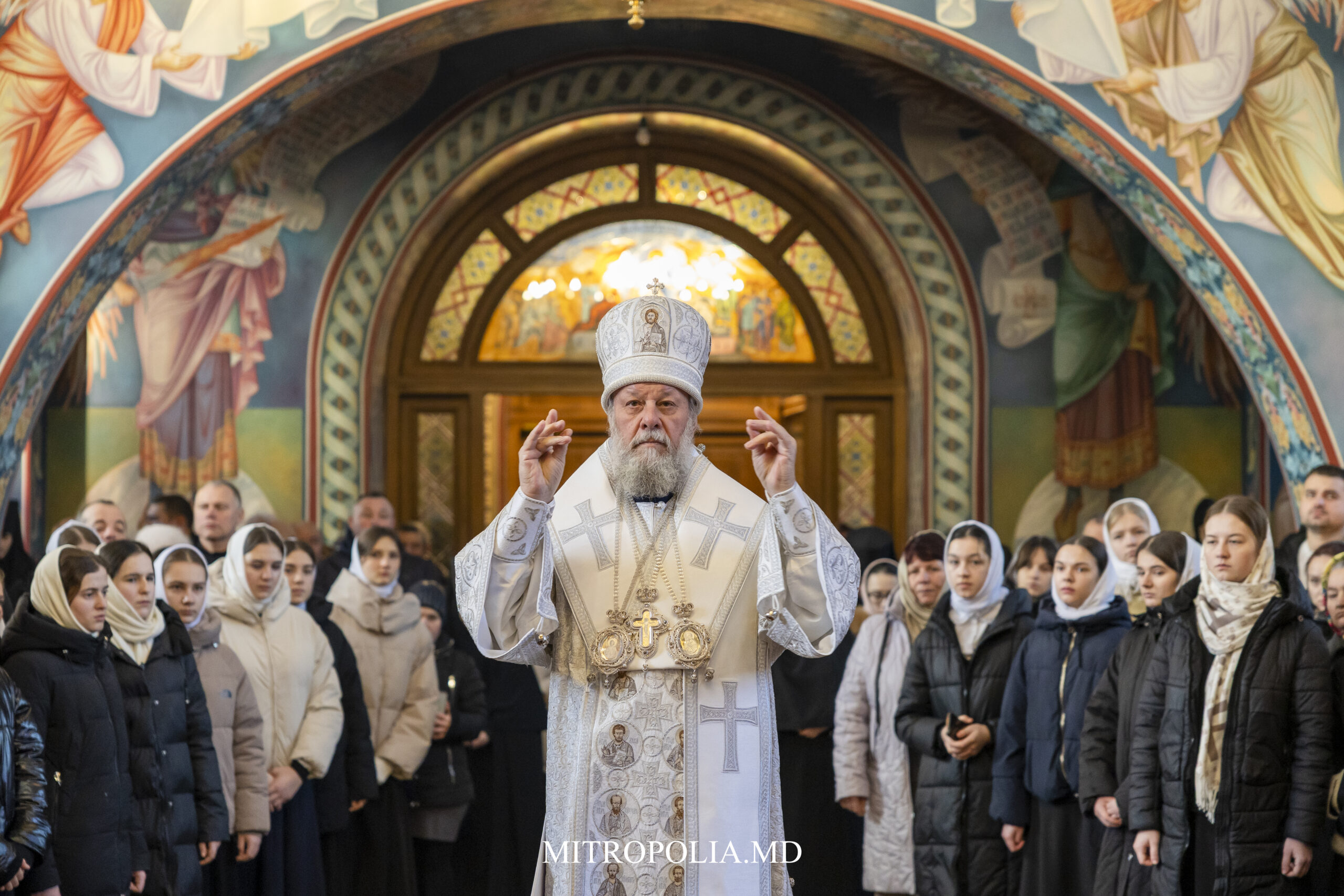 La Sfânta Liturghie alături de Înaltpreasfințitul Mitropolit Vladimir au înălțat rugăciuni: prot. mitr. Vadim Cheibaș, secretar mitropolitan, PC Arhimandrit Andrei (Cotruță), duhovnicul mănăstirii, soborul de preoți și diaconi, PC egumenă Marta, stareța mănăstirii, obștea monahală, elevele liceului și creștinii veniți la Sfânta Liturghie.